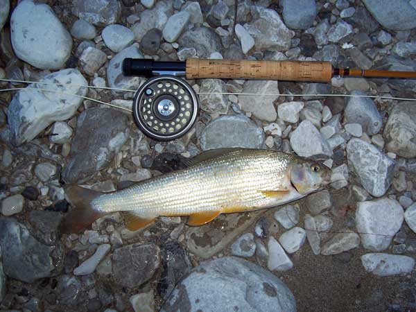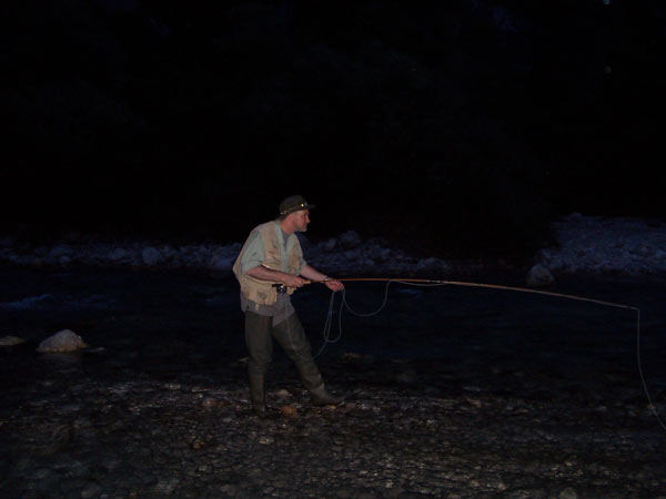 | E con sorpresa questa sera il fiume ci regala un temolo di dimensioni notevoli in rapporto all'ambiente in cui vive |