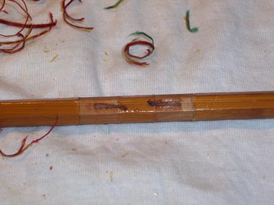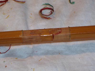 Puntale e parte centrale della canna terminata. Si dovrà osservare un periodo di asciugatura e riposo prima di poter usare l'attrezzo a pesca ma sarà comunque un'attesa necessaria