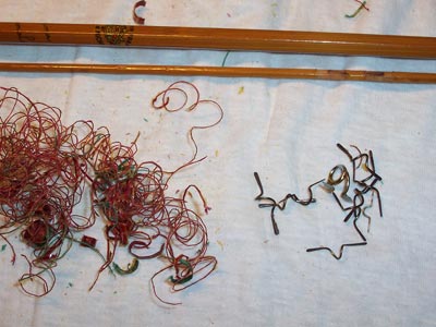 | A sinistra la ghiera a nudo, a destra notiamo il filo tolto dalle legature e gli anelli pronti per la lucidatura