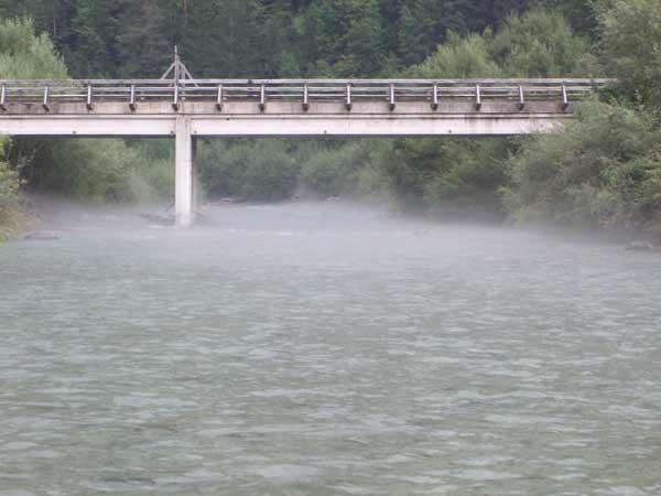 Sentiamo provenire dai monti dietro a noi tuoni poco rassicuranti e succede uno strano fenomeno: l' acqua non aumenta il suo livello ma aumenta la velocità?