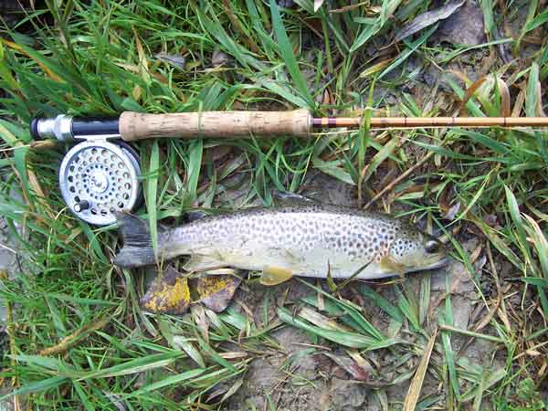![]() Vero la fine della giornata prendiamo un piccolo ibrido, segno che sia la fario che la marmorata sono ben presenti in queste acque |