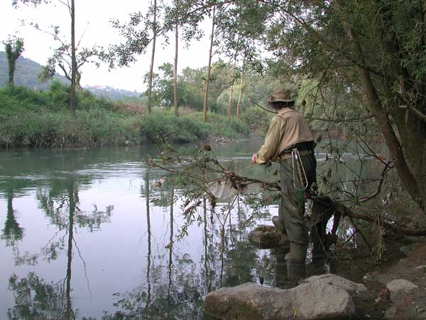 L'espressione che si vede sul volto di Stefano (che ha fatto centinaia di chilometri per venire a pescare con noi) la dice lunga sulla situazione di oggi: "ma quante mosche dovrò ancora cambiare per invogliare una trota" |