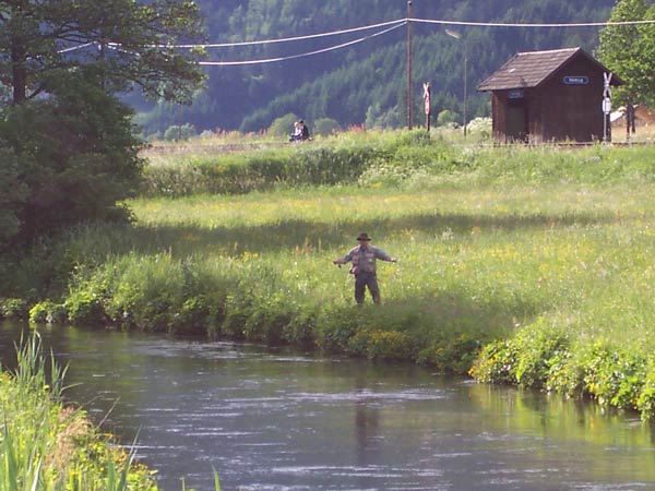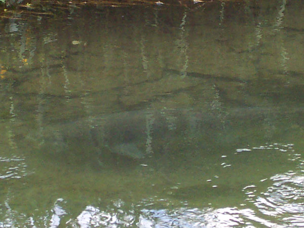 ![]() La foto è fatta con difficoltà ma si vede bene un esemplare di hucho (salmone del Danubio) stimato dai locali sui 12 chilogrammi |