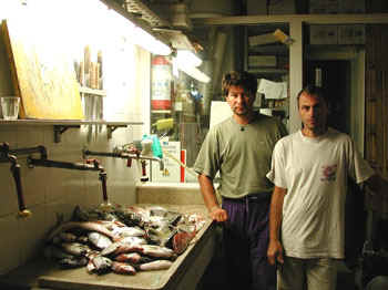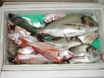 L'ecoscandaglio invece mi serve solo per misurare la profondità e non, come si penserebbe, per trovare i branchi di pesci, inoltre mi fa capire che tipo di fondale c'è sotto la barca ma ormai quest'ultimo dato non mi è quasi più necessario. Infatti in questi anni di uscite in mare con tutte le condizioni meteo possibili sono riuscito a capire : 1: a che profondità stanno i pesci 2: a che profondità stanno le varie specie di pesci 3: che esca usare Questi dati li calcolo in base alla temperatura dell'acqua e alla stagione. Quando esco in mare per pescare con il palamito posso decidere che tipo di pesce prendere e anche le dimensioni. Ovviamente le eccezioni ci sono sempre, come esemplari di tutt'altra specie in mezzo a quelle previste, ma sono comunque rare e piacevoli. |