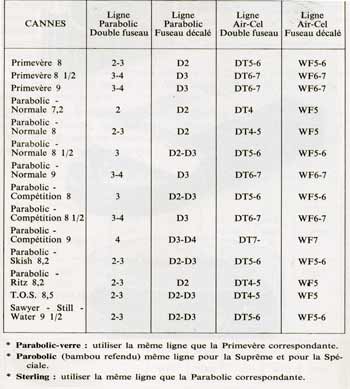 PARABOLIC SUPREME: built from 1939 to 1984. Normale action, 7' # 3/4 - 8' # 4/5 - 8'6'' #5/6 - 9' # 6/7, reference 230; competition action, 7' - 8' - 8'6'' - 9' ref. 232; moyenne action 8'6'' - 9' - 9'6'' ref. 234. Same quality, ‘Supreme’ : |