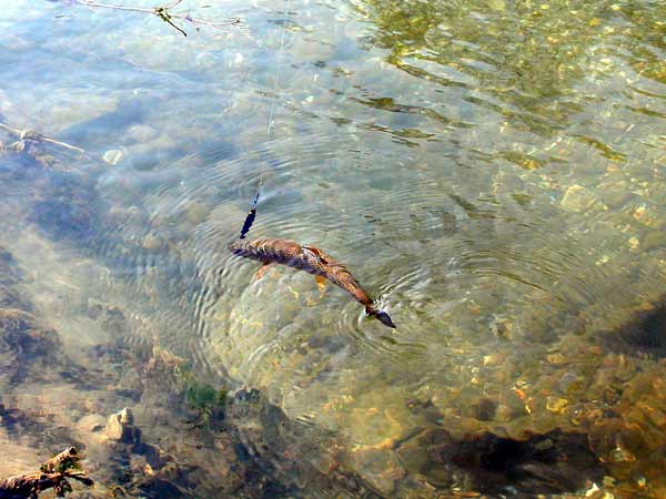 | Nell'acqua più profonda inganniamo diverse trote fario con gli artificiali, le mosche proveremo ad usarle verso sera | |