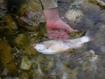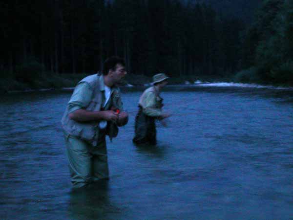 Alla fine della giornata rimangono solo gli irriducibili che pescano al buio. Le catture migliori le faremo adesso ferrando sul rumore della bollata che bisogna distinguere nel rumore del fiume. Ultima cattura alle ore 9.50 |