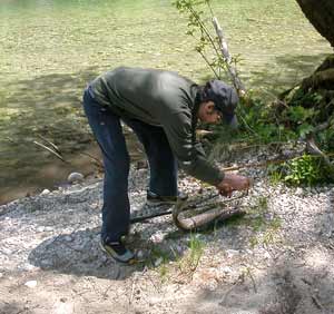 Dopo una lunga e difficile lotta ancora qualche difficoltà per metterla nel guadino |